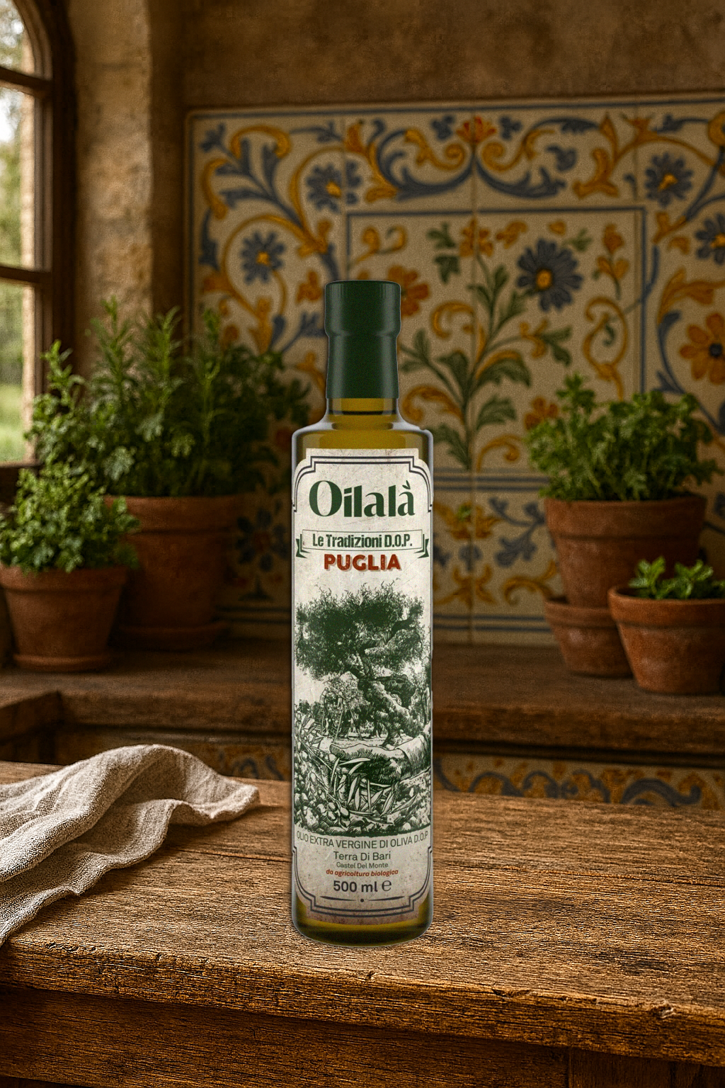 Kilmės vieta: Terra di Bari, Apulijos regionas – garsėjantis alyvuogių auginimo tradicijomis ir aukščiausios kokybės aliejumi.